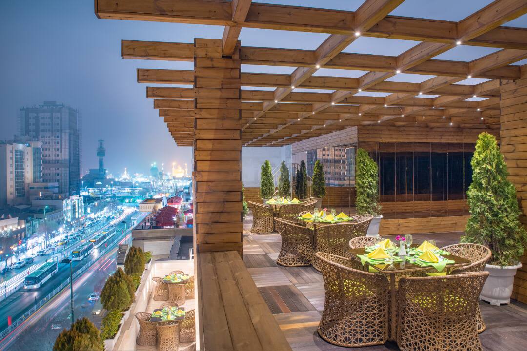 این هتل در ۷ طبقه ساخته شده است که مجموع این طبقات دارای ۵۳ باب اتاق و ۱۳۰ تخت می باشد. لابی که در سمت ورودی این هتل قرار دارد میتواند گنجایش ۴۰ نفر را داشته باشد و زواران عزیز میتوانند در آنجا با مهمانانشان گفتگو کنند. امکانات این هتل با توجه به سطح و نوع رزرو هر اتاق می باشد. یعنی در صورتی که رزرو به طور فولبرد و کامل انجام گیرد قطعاً مهمانان میتوانند از غذای رستوران نیز استفاده کنند. این هتل دارای یک رستوران مجزا است که مهمانان می توانند وعده های غذایی خود را در آنجا میل کنند. البته هر اتاق دارای صبحانه است که این صبحانه در همین رستوران به مهمانان تحویل داده می شود.